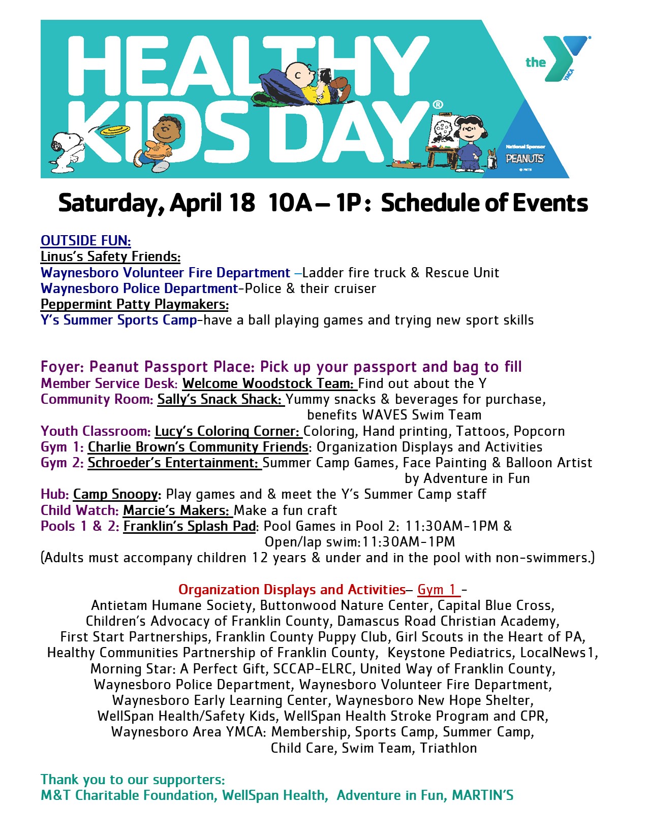 On April 18th, the Waynesboro Area YMCA will celebrate Healthy Kids Day,