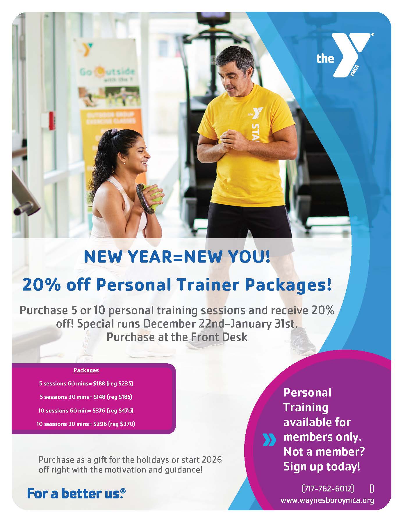 Individuals who have medical concerns, physical limitations, or are brand new to training may benefit from a Personal Training Consultation prior to committing to a training session. The Consultation is free for members, takes about 45 minutes, and is a great way for your trainer to address any concerns or questions that may arise when setting up a personalized program.